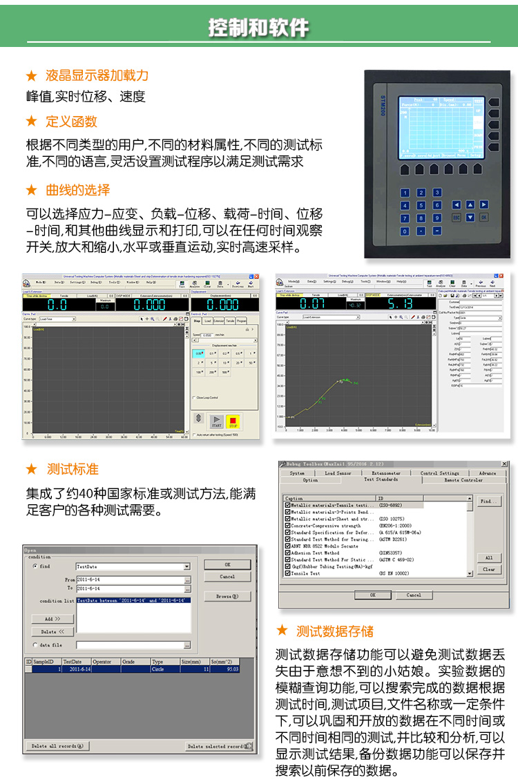 試驗(yàn)機(jī)軟件為各種材料或行業(yè)測(cè)試提供簡(jiǎn)潔直觀的操作界面、可用戶編程的強(qiáng)大交互能力、完善的分析與報(bào)告功能以及內(nèi)置大量的標(biāo)準(zhǔn)測(cè)試方法。即能夠滿足質(zhì)量控制所需的簡(jiǎn)單、易用、高效的要求,又能夠滿足科研院所深入研究材料性能所需的個(gè)性化試驗(yàn)要求。
